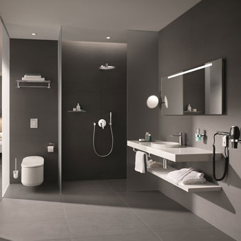 Darüber hinaus sind die Ansprüche in Bezug auf Hygiene deutlich gestiegen. Hier stellen berührungslose Armaturen und Betätigungsplatten eine ideale Lösung dar. Dank der Bedienung per Sensor wird nicht nur die Keimübertragung reduziert, sondern auch Wasser gespart– ideal für öffentliche oder halböffentliche Sanitärbereiche.