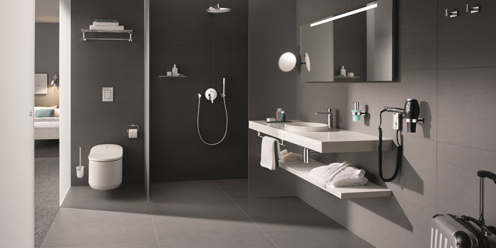 Für Hotelleriebetriebe und in der Objektplanung eine Herausforderung: Neben der gewünschten Nachhaltigkeit besteht auch ein hoher Anspruch an Komfort und Design, zum Beispiel im Sanitärbereich. Innovative Produktlösungen von GROHE helfen dabei, diese Anforderungen zu erfüllen. Das umfangreiche Portfolio für Bad und Küche umfasst wasser- und energiesparende Lösungen, die auch optisch überzeugen. Die Marke setzt sich bereits seit 20 Jahren für einen verantwortungsvollen Umgang mit Ressourcen ein.
